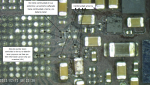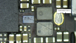 Hola compañeros, tengo un caso de un iPhone 5C que me ha llegado después de haberse mojado, nada más enchufarlo en la fuente daba un consumo de 0,200, le hice limpieza con pincel y cubeta ultrasonidos y no dió resultado, a continuación le desmonté la placa base y tenía corto en varios condensadores al lado del U21 (IC sonido) tras varias comprobaciones y conclusiones le desoldé ese IC pero el corto sigue, a continuación os pongo 3 fotos ordenadas para que le echéis un vistazo al recorrido de dicha línea que está en corto para ver si me podéis ayudar.