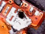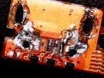aisla las 2 soldaduras grandes (van a tierra) del del pin que estan a sus costados que es lo que hacen corto,