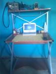 Les cuento: estoy empezando a construir (o modificar, mejor dicho) mi lugar de trabajo. Actualmente trabajo en el mismo escritorio donde estudio, que es muy básico, chico e incomodo. lasí que decidí agregarle un par de repisas, toma corrientes, luces, etc.