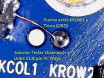Buenas noches Colegas. Adjunto solución Teclas de Volumen para LANIX S130 (y algunos mtk los cuales he visto el mismo esquema o las mismas líneas) cuando los pulsadores o botones están OK pero no sube ni baja volumen, aclaro que en este caso se hizo puente directo a tierra con óptimos resultados pero recomiendo uso de una resistencia. Esto cuando no hay lectura con multimetro en escala de Ohmios o Continuidad entre el punto KROW2 a Tierra GND.