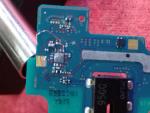 Saludos colegas. Se me arrancaron varios componentes de esta zona del flex de carga del samsung A50 y no sé cuales son y las continuidades ni los valores. Necesito su ayuda para identificarlos, gracias.