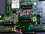 Battery voltage= 4.17V power connector voltage= 4.04V the rest is in the pictures. Please see. This phone does not turn on, it takes 0.6A CHARGE, only the red light is on, there is no short circuit.. Where is the problem?